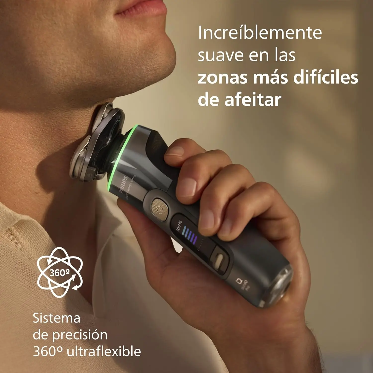 Al probar la máquina de afeitar i9000 lo primero que he notado es que se siente muy cómoda, y lo más importante es que he podido utilizarla en seco y también bajo el agua. He notado que tiene 5 modos de afeitado diferente que se ajustan al tipo de barba que tengo en el momento y me ha impresionado que cuenta con tecnología de inteligencia artificial incluida.