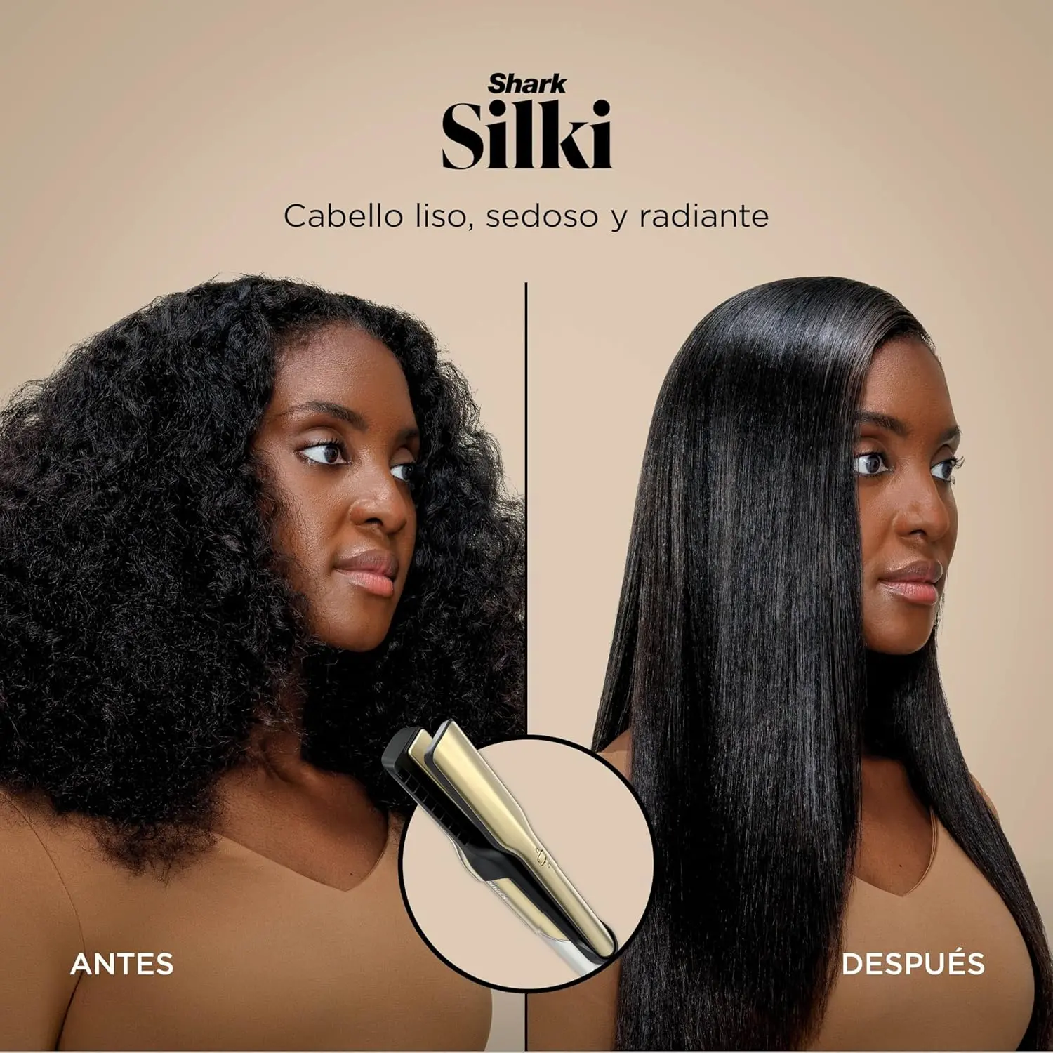 Un acabado brillante y secado rápido es el resultado de utilizar la plancha Shark Glam que cuenta con tres niveles de calor y tres niveles de aire, además que incluye la opción de aire frío con el que puedes fijar un peinado específico.