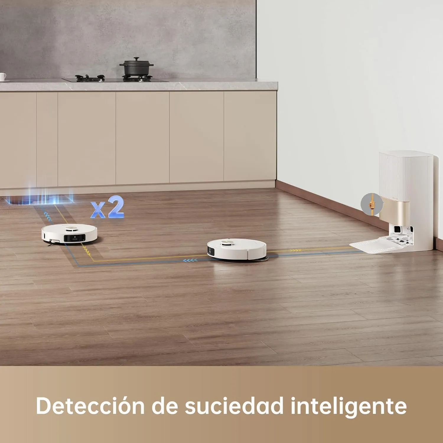 He estado probando este modelo en casa y he quedado contento con el resultado. Lo primero que llamó mi atención fue ver que mantiene una ruta de limpieza sin chocar ni desviarse. Cuenta con luz láser (3D) y cámara (RGB) que sirve para detectar objetos pequeños como cables,  y mascotas que los esquiva sin chocarlos ni arrastrarlos. A mí me ha funcionado bien porque tengo dos gatos y siempre hay juguetes por el suelo y así no tengo que organizar la casa antes de colocar el robot.