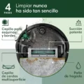 Este es un robot aspirador que destaca porque tiene un poder de succión elevado para su precio, son 7.000 Pa que según he podido comprobar pueden aspirar todo tipo de pelos, polvo y migas de comida sin problema. Es ideal para suelos duros, ya que sus mopas ejercen una presión extra para eliminar las manchas incrustadas de manera sencilla.