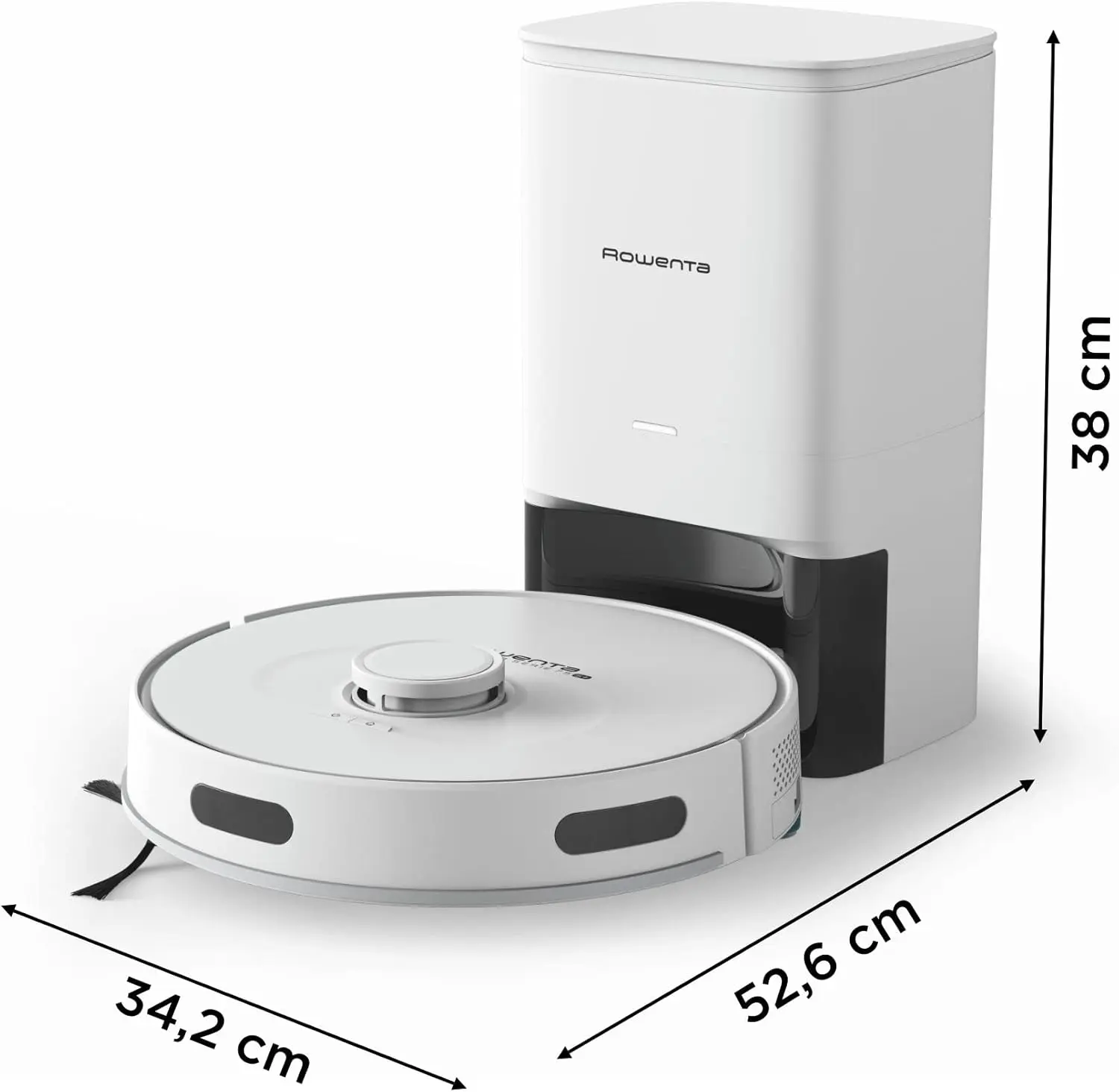 Es un modelo compacto (9,7 cm) aunque hay otros robots más compactos, pero puede pasar debajo de la mayoría de los muebles y camas, a menos que sean muy bajos. Su base con autovaciado incluida es fácil de ubicar con sus 38 cm de altura, yo lo he puesto debajo de una encimera sin problema.
